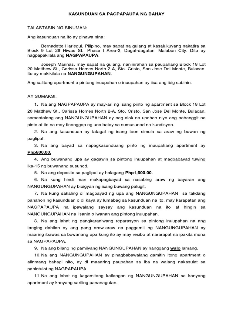 Pumunta sa sentro ng pagpapaunlad ng mga kababaihan. Ako si kapitan vanessa, ang barangay captain. Na ang nasabing bahay paupahan ay hindi gagamitin sa anumang uri ng negosyo na labag sa batas tulad ng sugal at iba pa. Kasunduan sa pagpapaupa ng bahay pngline page 2 6. Hindi naman napigilan ni marcelito ang mapaiyak nang balikan ang dahilan ng kany.